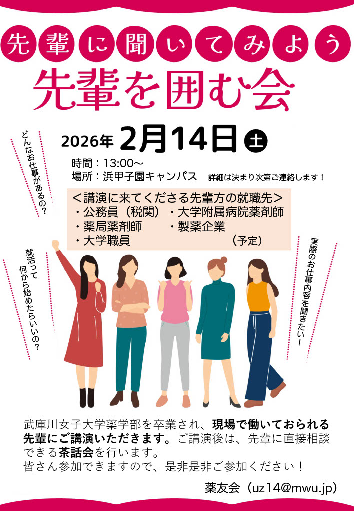 毎年好評の先輩を囲む会(薬学生OGによる就職講演)の日程が決まりした!